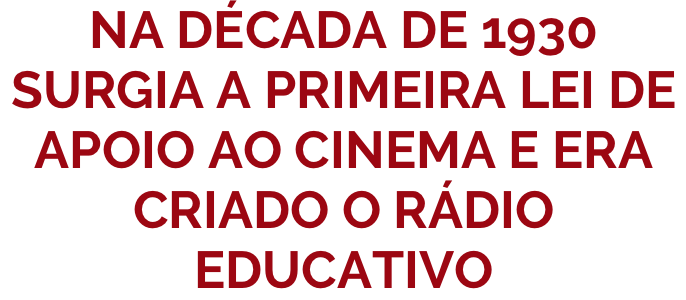 Em 1932, o presidente Getúlio Vargas promulgou a primeira lei em apoio ao cinema brasileiro, precursora da atual cota de tela, embora então restrita aos filmes documentários; criou, em 1936, o Serviço do Patrimônio Histórico Nacional (atual IPHAN), onde teve colaboradores de grande expressão.